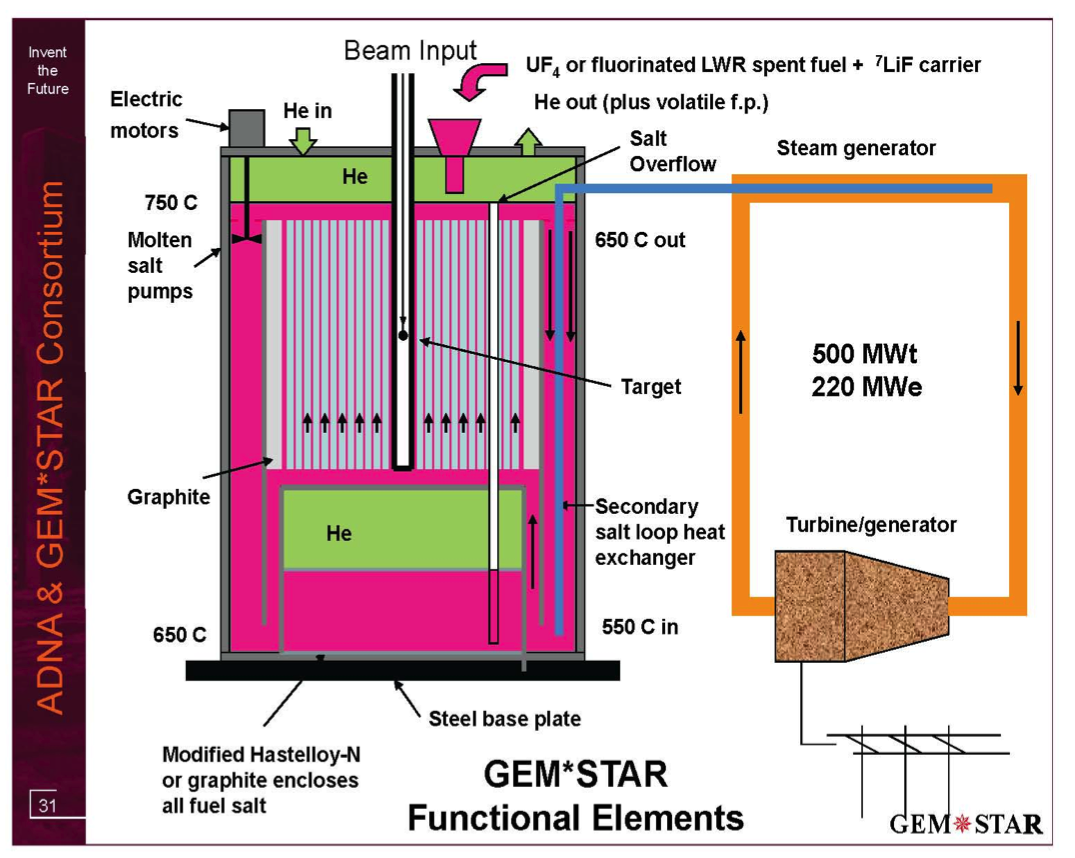 - No Possibility for Large Volatile Releases (as at Fukushima)! GEM*STAR uses Molten-Salt fuel, derived safely and easily from W-Pu or SNF, which permits dangerous volatile radioactive elements to be continuously purged and safely stored.